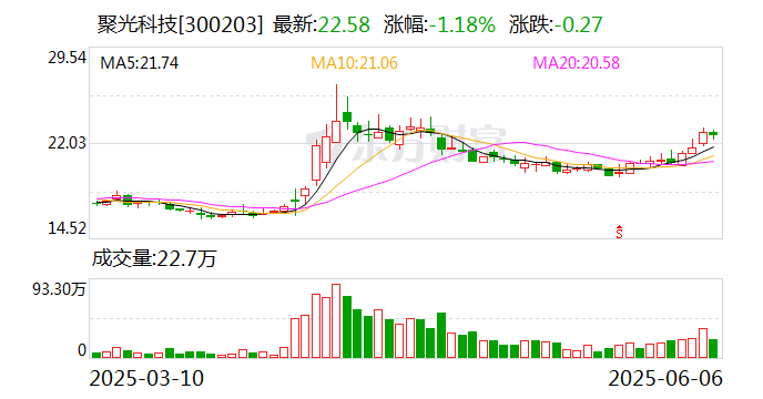 6月6日,聚光科技(300203)发布公告,控股股东之一的公司浙江睿洋科技有限公司持有的230万股股份因司法拍卖完成过户,股份占公司总股本的0.51%。